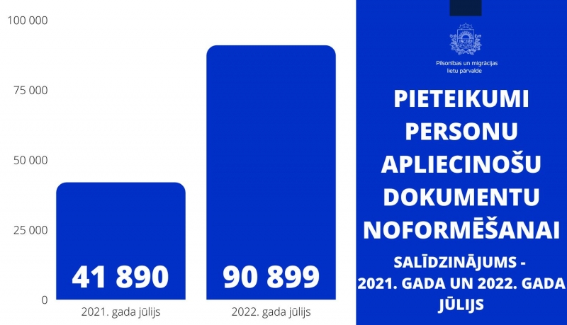 Pārvaldes klientu apkalpošanas kapacitāte un pieprasījums pēc pakalpojuma, salīdzinot ar pagājušā gada jūniju, ir būtiski pieaudzis: pērn jūlijā Pārvalde saņēma nepilnus 41 890 pieteikumu personu apliecinošu dokumentu noformēšanai, bet šogad tas ir gandrīz trīskāršojies – šogad jūlijā saņemti 90 899 pieteikumi. Nepilnu trīs mēnešu laikā kopš personu apliecinoši dokumenti tiek noformēti un izsniegti rindas kārtībā, kā arī ir pagarināts darba laiks 14 nodaļās, Pārvalde noformējusi 216 667 pieteikumus. Jūnijā pieņemts par 30% vairāk pieteikumu, bet jūlijā par 50% vairāk nekā šī gada aprīlī, kad apkalpošana notika tikai pēc iepriekšēja pieraksta. Tāpat šomēnes informēti Latvijas balsstiesīgie iedzīvotāji (aptuveni 10 000 klientu), kuriem 1. septembrī beigsies pases vai eID kartes termiņš, izsūtot atgādinošas e-pasta vēstules, lai mudinātu laikus apmeklēt teritoriālās nodaļas un noformēt dokumentus līdz 14. Saeimas vēlēšanām.
